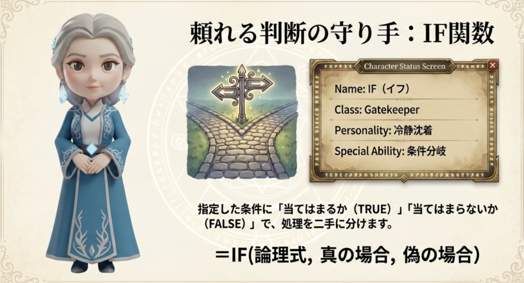 IF関数は、条件が成立するかどうかをもとに、表示する値を切り替える関数でした。