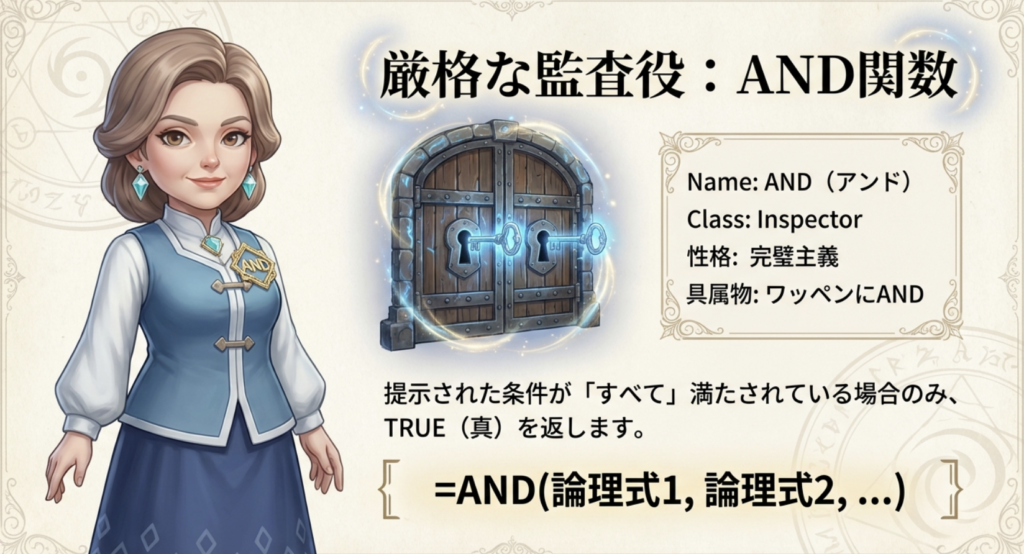 まず、私は複数条件が全て合致していれば「TRUE」を返す関数なの。