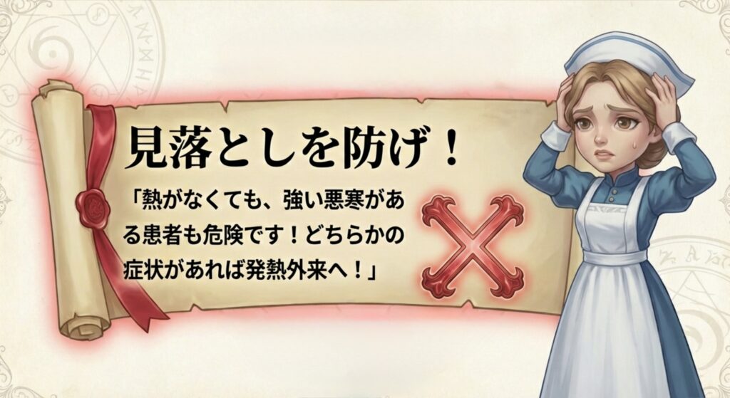 発熱があり、かつ咳がある患者さまの抽出にはあの方とご一緒でなければならないわ。