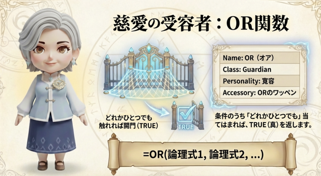 私はどちらか一方の条件がクリアできれば「TRUE」を返すだけ。